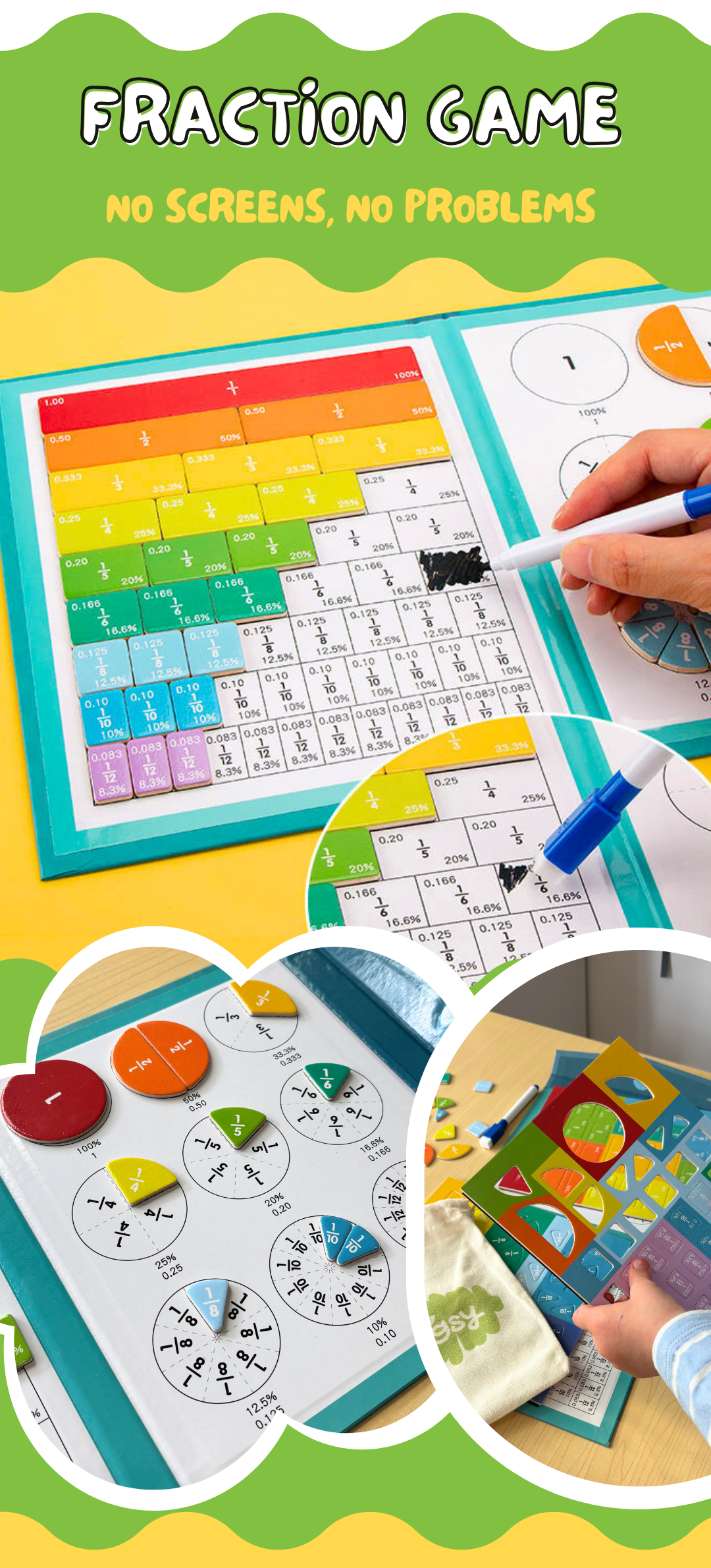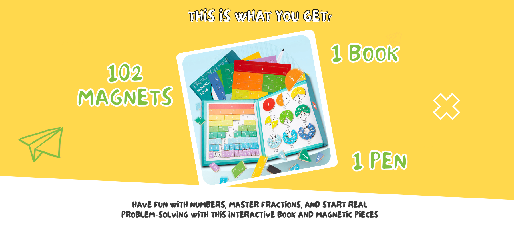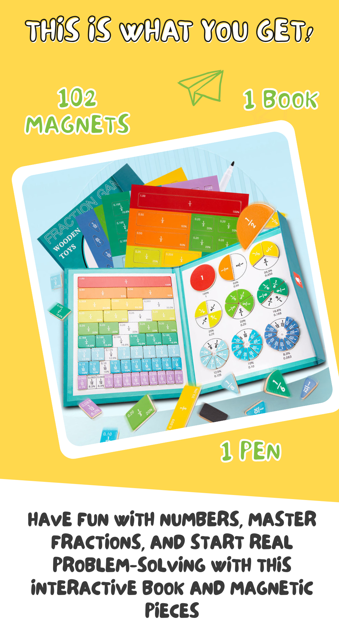Helps children see, touch and build numbers and fractions instead of just memorising them. With chunky magnetic pieces that snap into place, kids naturally explore counting, addition, subtraction and fractions, all while playing independently.