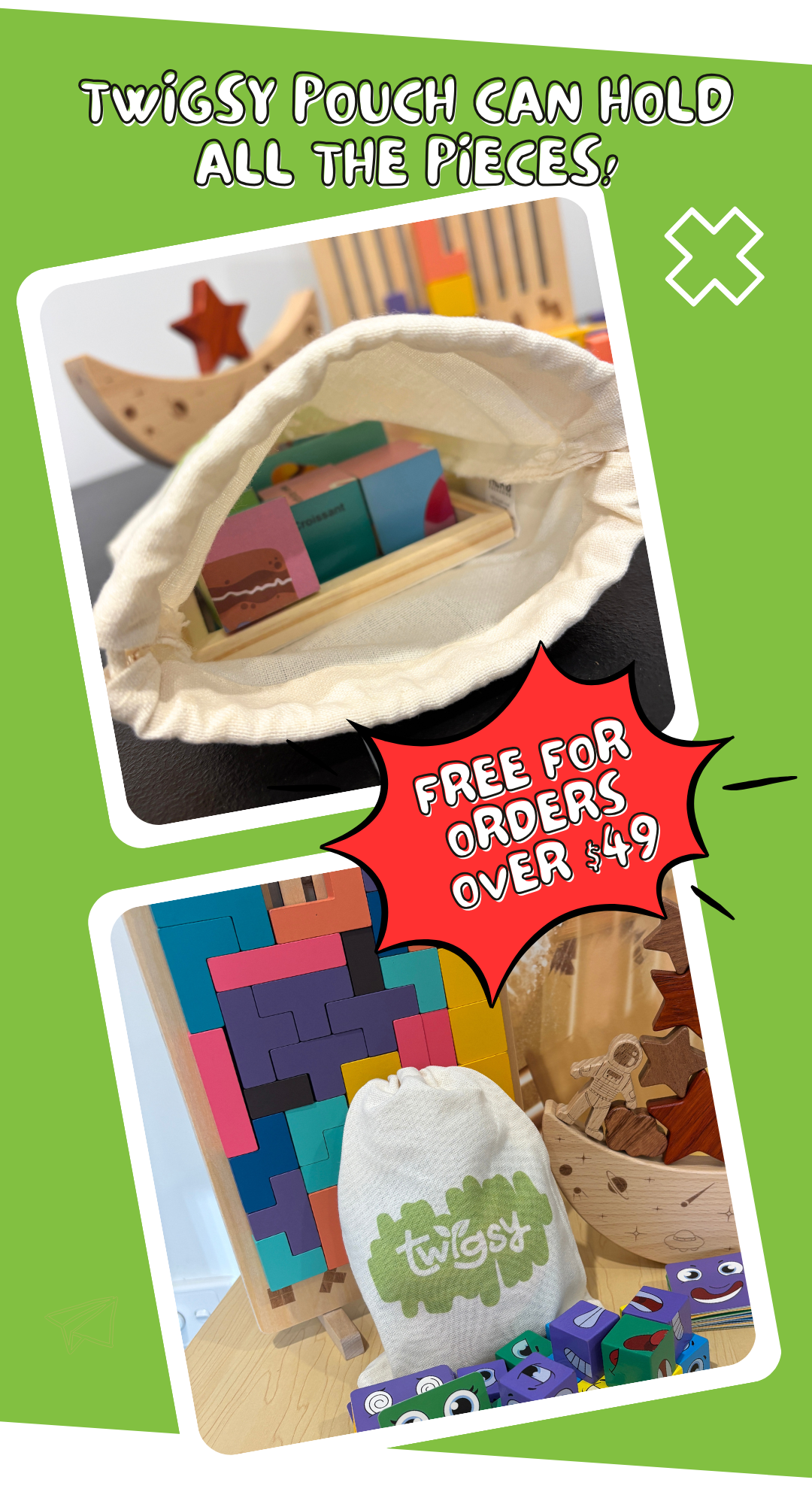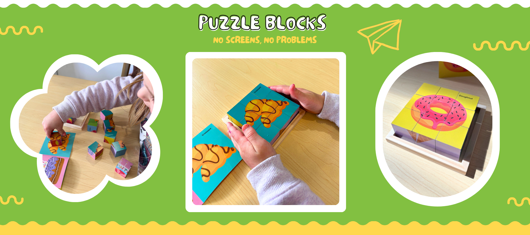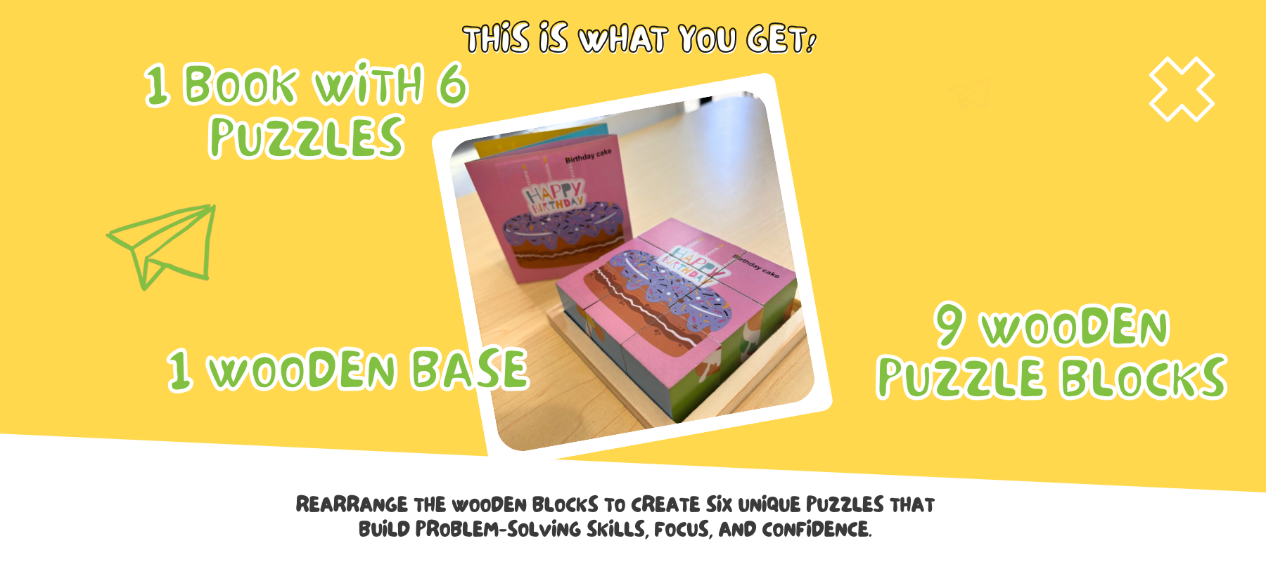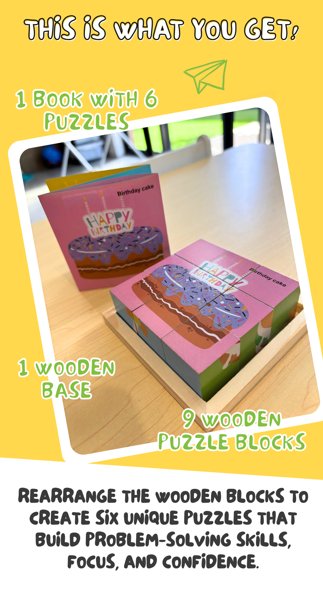 This wooden block puzzle is designed to grow with your child, offering 6 different puzzles in one compact set, each one building confidence, creativity, and problem-solving skills. With chunky, oversized wooden blocks, it’s perfectly sized for little hands and made for safer, frustration-free play.