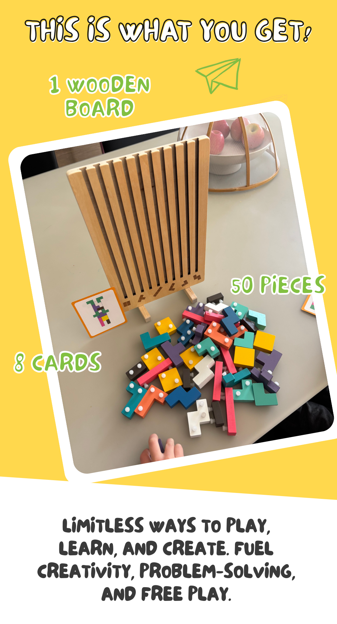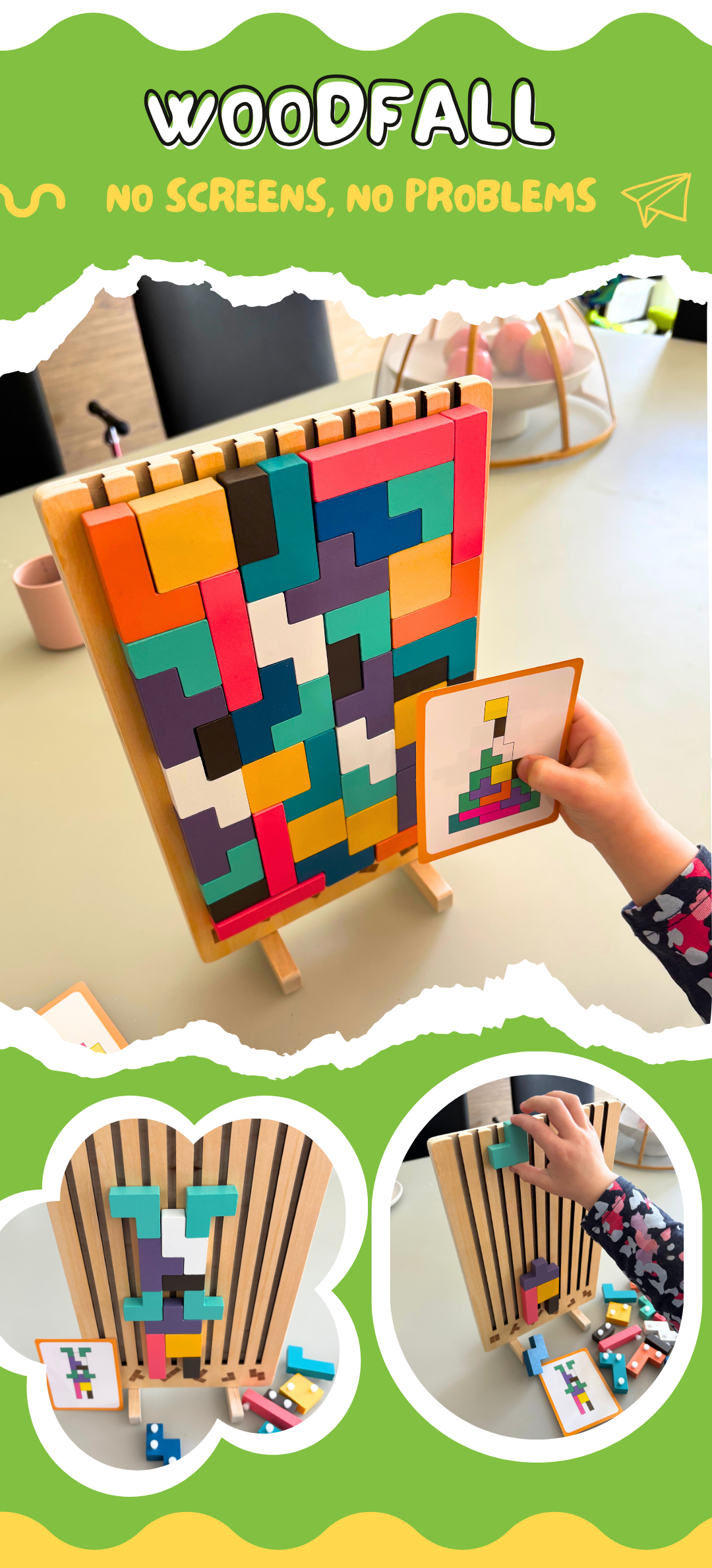 Designed for ages 3–10, this wooden stacking game strengthens hand-eye coordination, patience and spatial thinking. No batteries, no apps, no noise.